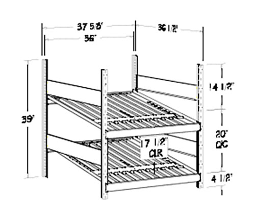 Each level is equipped with a front stop and two side rails to keep the battery in its place. Levels are inclined 15� to ensure the rotation of stock (FIFO). 36"W x 36"D x 39"H - 2 Tiers Photo is a product image only as final product look may change depending on color - For other or personalized configuration, Contact Us.